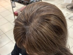 白髪ぼかしは、あえて明るい筋感を入れることで白髪を“自然に馴染ませる”カラー。