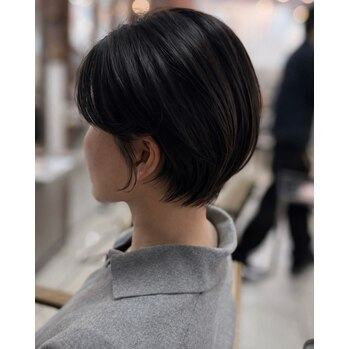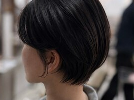 今回のお客様は、すっきりとした印象の中にも柔らかさを残した“丸みショート”に。襟足は首に沿うように収めることで、後ろ姿まで美しく見えるように整えています。また、乾かすだけで自然にまとまるようにカットしているので、朝のスタイリングも簡単です。ショートにしたいけど似合うか不安な方や、扱いやすさを重視したい方にもおすすめのスタイルです。骨格や髪質に合わせてバランスを見ながらご提案させていただきますので、ぜひお気軽にご相談ください。