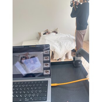 撮影前は、ヘアやメイク、バランスを細かく確認しながら、