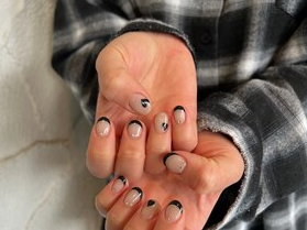 甘々にはしたくなかったので、黒フレンチに黒のハートをちらほらと^ ^