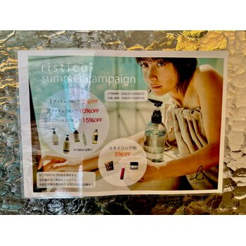 こんにちは!Nanamiです!!夏のキャンペーン予約受付開始しております*1アイテムご購入→5%OFF...
