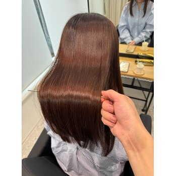 ストレートでベースの歪みやうねりをしっかりと整えてから、カラーで栄養と艶をプラスすることで、髪のまとまり・柔らかさ・ツヤ感が格段にアップします。
