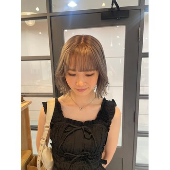 bleach2~3回ベースのホワイトグレージュ派手すぎず、ハイトーンだけど柔らかい印象♪色落ち段階もキレイで、残留もしないのでカラーチェンジもしやすいですハイトーンはベースが命!なので、ぜひ担当させてください^^
