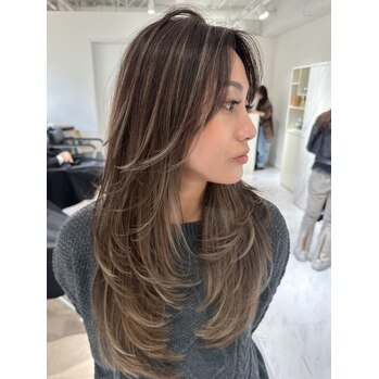 今っぽい透明感のあるカラー、白髪ぼかしのハイライト、職場でも浮かないナチュラルなトーン、どんなご希望も遠慮なく教えてください。