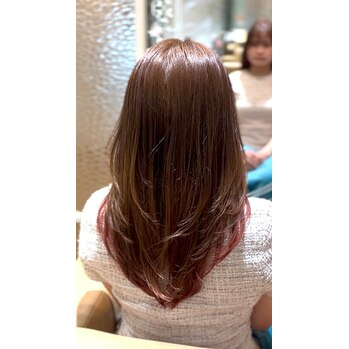 レイヤーカットで髪に段が入っているのでインナーの髪色もさりげなく見えて