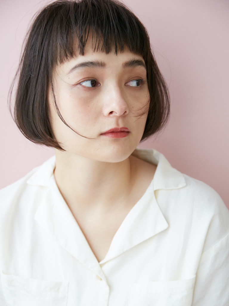 N.ポリッシュオイルで艶感と広がりを抑えてウェット感を出すとトレンド感が出ます。ポイントの前髪はチョッピーバングで最高に可愛く仕上げます。